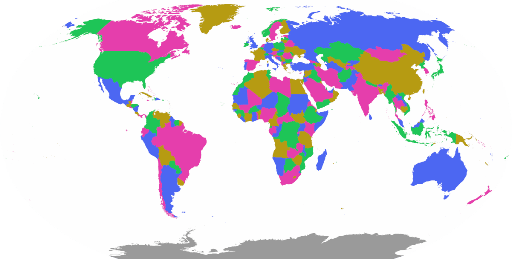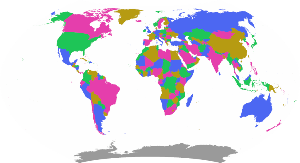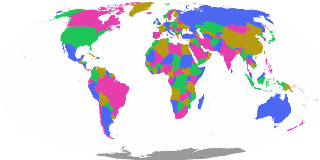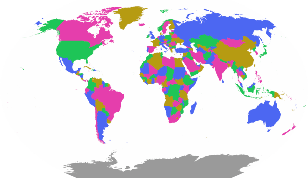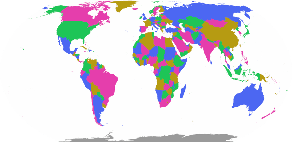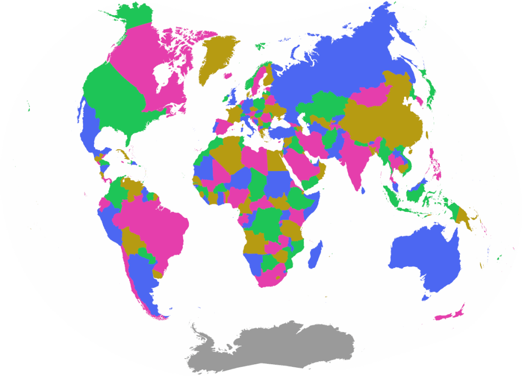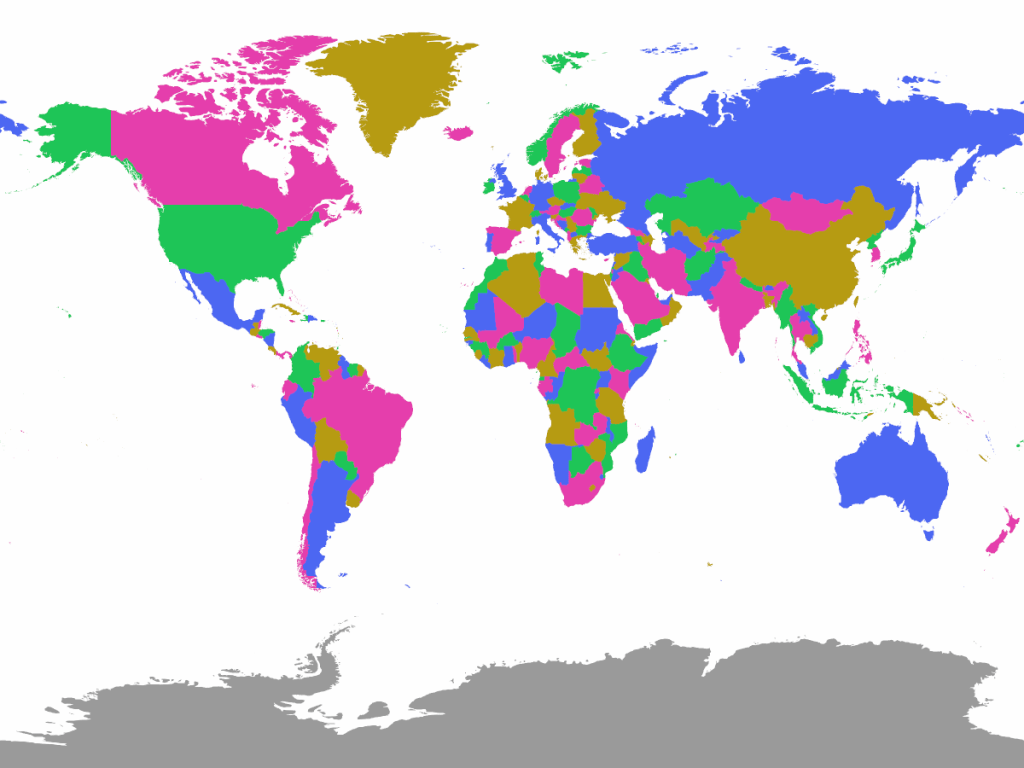 It might look something like this. Note that the vast areal distortions of the Mercator projection don’t really impede the ability of the map to communicate its information; they just make Greenland, Canada, and Russia take up an unnecessary amount of vertical space. Also note that most of this map (~65% ignoring margins) is whitespace: the oceans. They convey no information, as they represent no category.