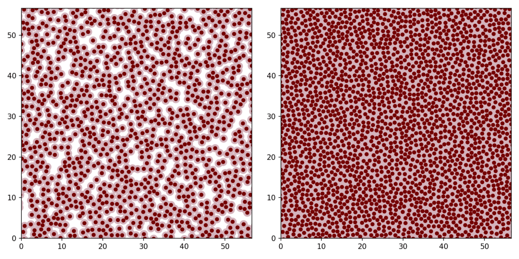 In 2007, Canadian computer scientist Robert Bridson sumbitted a paper to the annual SIGGRAPH conference presenting a new algorithm for generating spacial distributions of points (“Fast Poisson disc sampling in arbitrary dimensions”, available here). Specifically, it’s an algorithm for Poisson disc sampling – generating random, uniformly distributed points with the condition that no two are closer together than some distance Rmin.